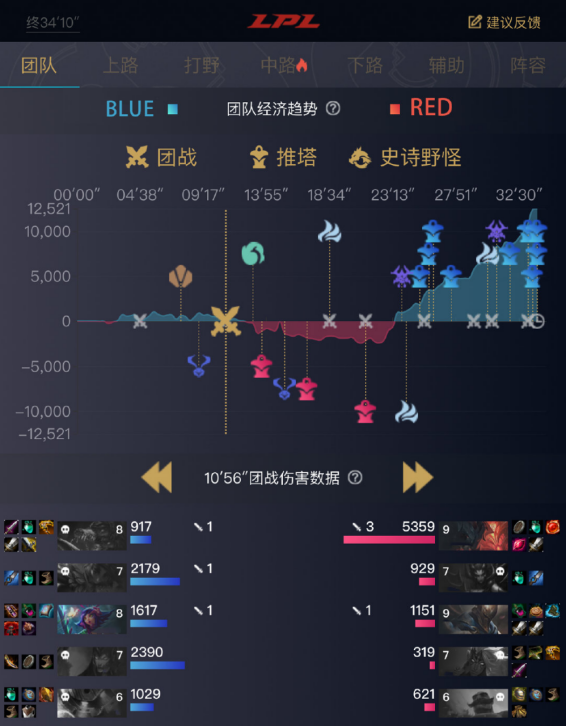 为了提升玩家的观赛体验,前段时间LPL还在所有平台上上线了实时数据的功能,玩家可以在比赛过程中随时查看战队BP、选手符文、团队经济、对位信息等多项赛事数据。