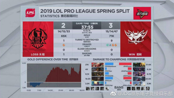 19年春季赛季后赛第八名的JDG击败排名第一的FPX