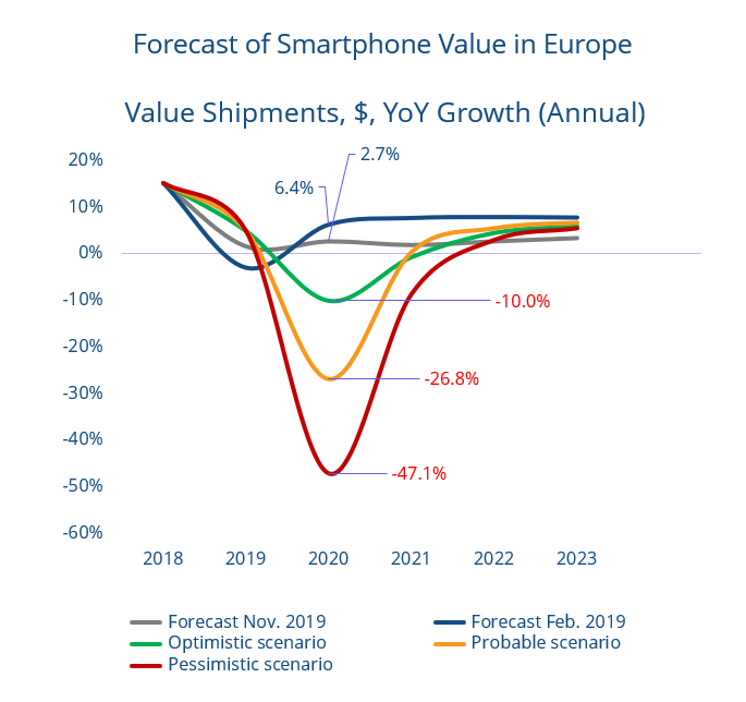 众所周知,小米除了中国和印度市场外,欧洲是主要的海外市场,但从目前了解的情况是,西欧智能手机市场今年第一季度出货量同比下滑18%左右;而整个欧洲市场,IDC去年11月给出的乐观预计为全年同比增长2.7%;悲观的预计为同比下滑47.1%,需要说明的是,这个预计是在今年疫情未发生的前提下做的预测。这种情况下,小米真的可以逆势实现高达55%的同比增长?