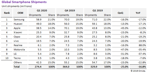 细心的读者到这里可能会发现,在乐观派的IDC和Canalys的统计中,vivo都进入到了全球前5,而在悲观派的Counterpoint和Omida的统计中,则是OPPO取而代之,而且OPPO都是在出货量同比下滑分别为13.2%和19.2%,且不含子品牌REALME的前提下取得的。