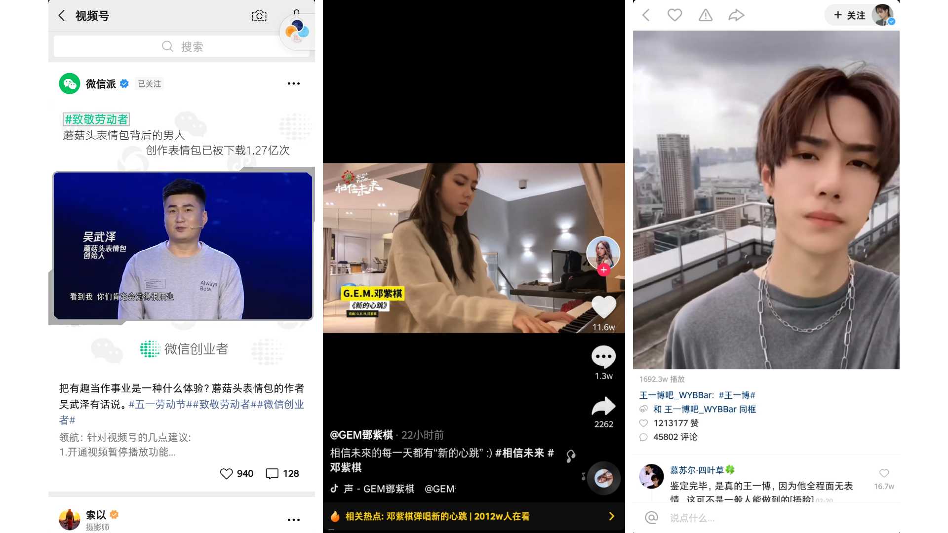 在灰度测试期间,自媒体大V,网红博主KOL,企业机构和明星等等各类群体代表人物都已被邀请开启了视频号,为视频号吸引了不少围观者,但仅限于互联网行业热度很高。不过,还是有很多业内人士称,以前没赶上抖音快手,现在是时候抓住视频号的流量红利了。