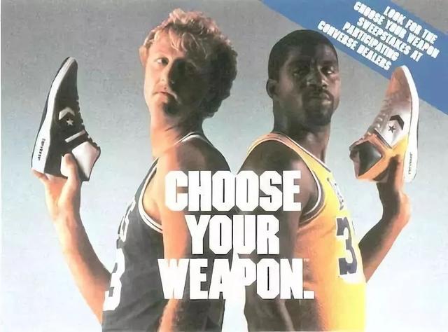 到了80年代中期,NBA在大卫-斯特恩的改革下逐渐步入正轨,而那时恰逢湖人ShowTime时代,以及魔术师与伯德引领的「湖凯大战」,联盟的关注度处在鼎盛时刻。1985 年,匡威推出了「Choose Your Weapon」系列,无论在外观、功能性还是话题方面,都可谓是空前绝后,也顺势拉开了球鞋潮流的新时代。