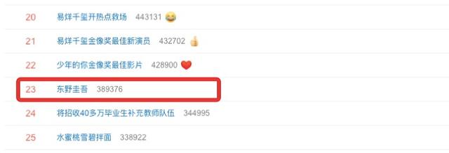 在金像奖颁奖结束之后,除了金像奖、周冬雨、易烊千玺等相关话题登上微博热搜,东野圭吾也被一并送上热搜。虽然大家都主张着“小说抄袭,不要上升演员”,也在尽力将电影改编的成功与原著小说之间的联系区别开来,但是这其中的矛盾显然是不能够避免与忽视的。