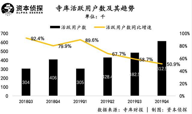 作为垂直领域的玩家,寺库首要的问题在于如何面对综合电商巨头入场抢生意。综合电商的优势在于流量,而寺库2019年第四季度的活跃用户数为61.25万人,体量不及巨头,增速还呈持续放缓的趋势。