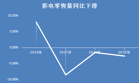 要知道,从2017年开始,整体电视市场处于下行通道中。根据中怡康推总数据,2019年国内电视零售量同比下降2.6%,零售额同比下降11.7%。