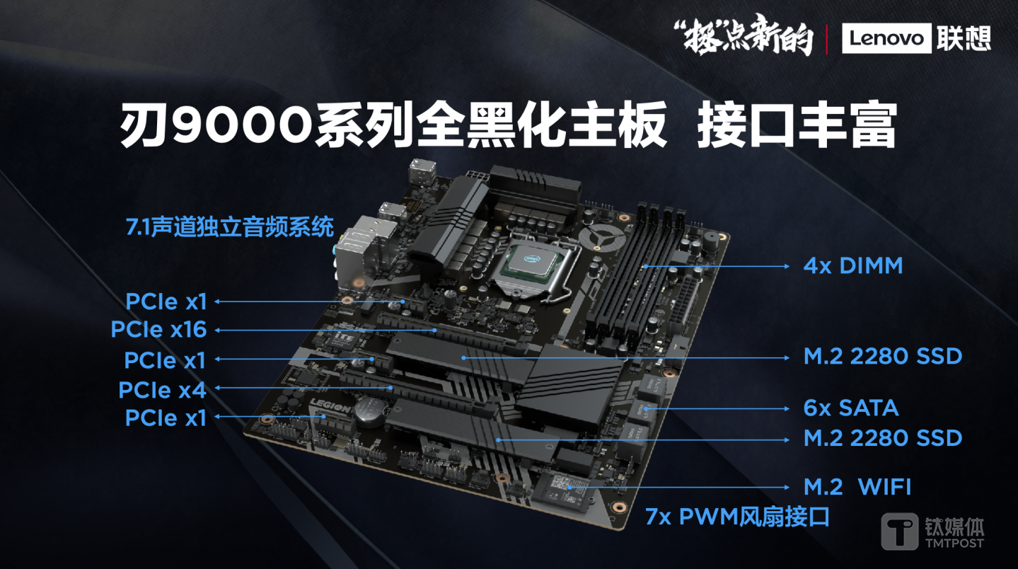 除了性能和外观上的全面升级,拯救者刃系列新品在升级拓展方面也进行优化。全黑化主板提供丰富接口,带来更多的扩展选择。