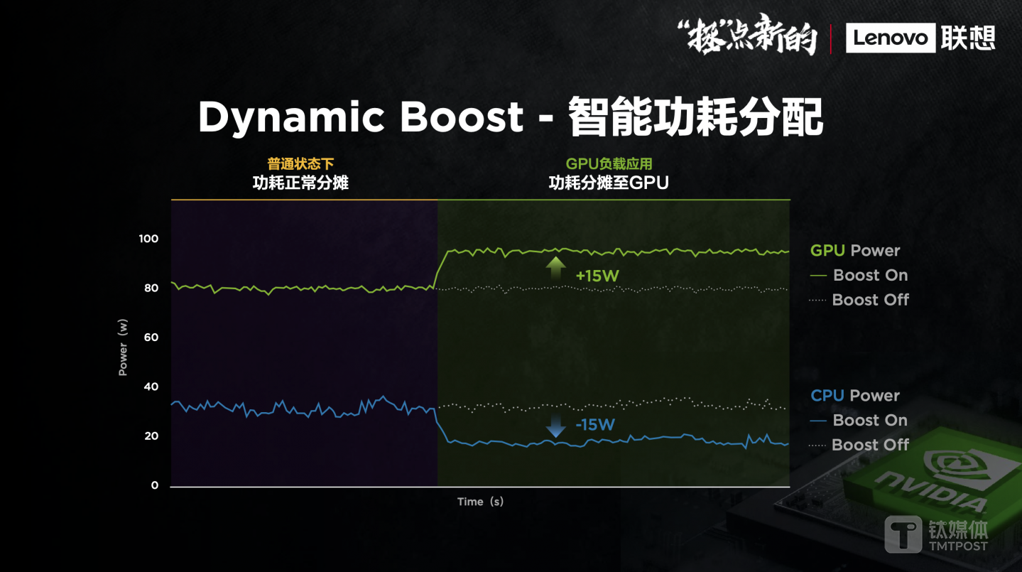 此次,拯救者笔记本支持Dynamic Boost智能功耗分配,产品可以根据用户的需求,提供更强图形性能且无需用户手动干预。