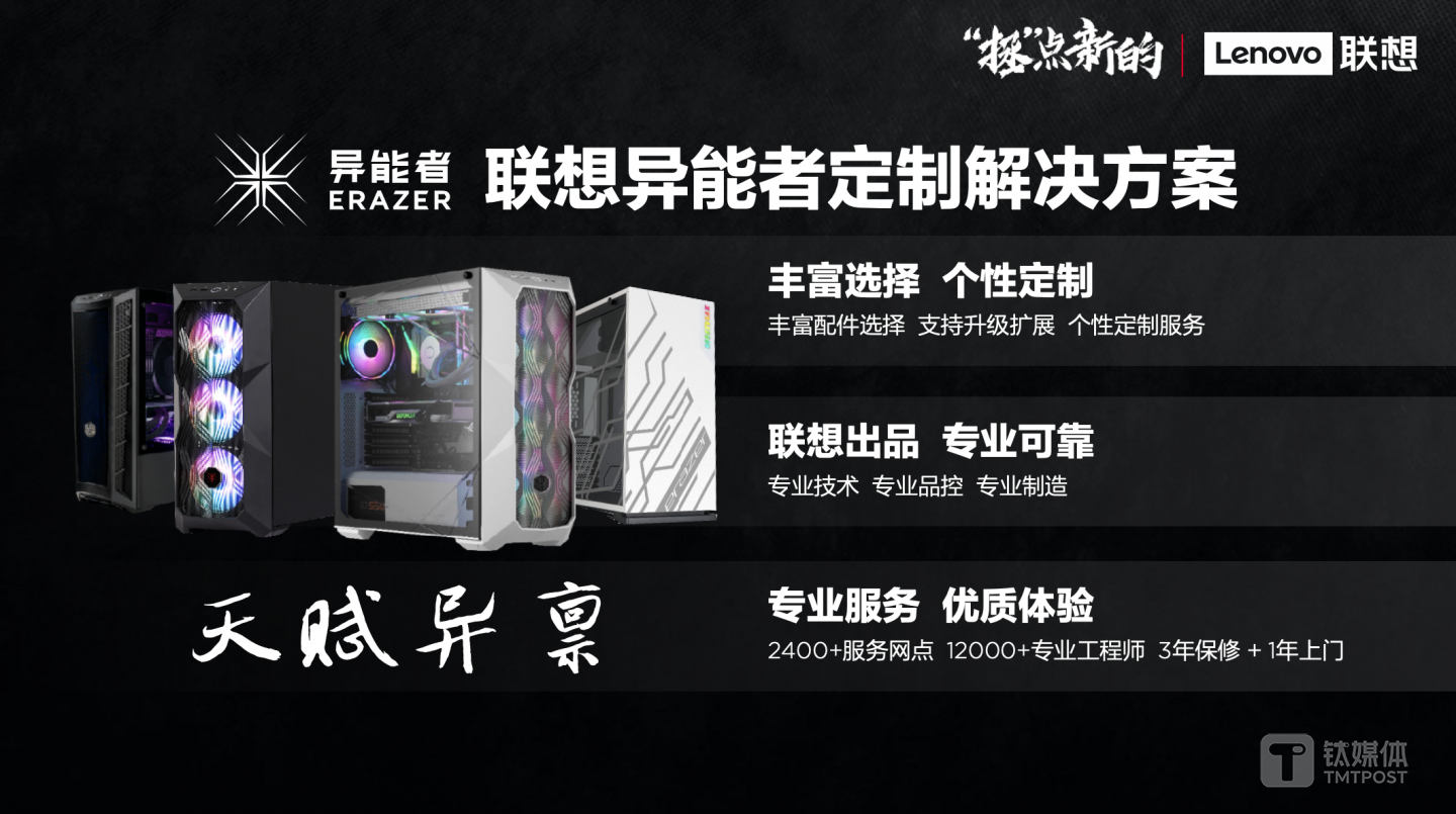 同时,全新的联想异能者整体游戏解决方案也在本次发布会中进行亮相,用户可以根据自己的需求DIY主机,并还可以拥有联想其他服务支持。