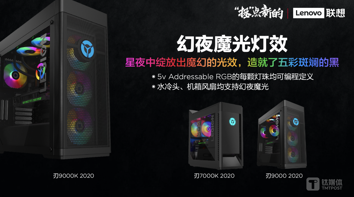 本次拯救者新品发布会除了发布了最新的笔记本产品,联想带来了四款全新的台机产品,包括拯救者刃7000K 2020、拯救者刃9000 2020、拯救者刃9000K 2020和经典外观的Y7000 2020。