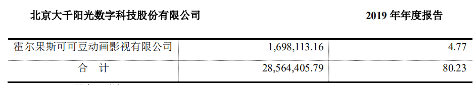 其中,以动画电影、动画剧集的中后期制作为主营业务的大千阳光,在2017年-2019年连续三个年度的前五名客户累计销售量占当期销售总额的比重均超过了80%,2019年前5名客户的累计销售量则占比 80.23%,仅是中传合道的所占比例就达到40.91%。