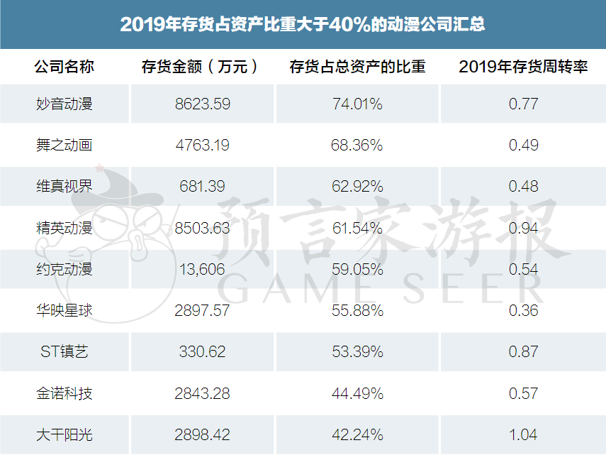 9家动漫公司存货占总资产比重超40%,存货转化概率低、时间长将影响业绩