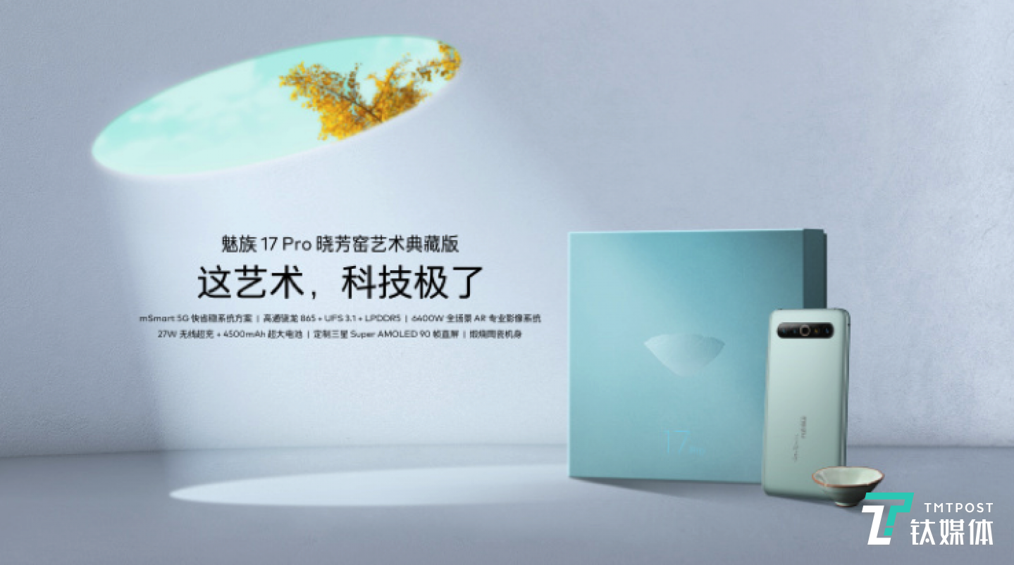 除了普通版本外,魅族 17 Pro 有晓芳窑艺术典藏版,限量 50 套。该系列在魅族 17 Pro 的陶瓷机身上实现了天青配色,随手机配送一只晓芳窑汝窑葵口盏杯,该限量版售价为 9999 元,将于 5 月 25 日 10:00 在魅族商城、魅族天猫、京东官方旗舰店正式开售。