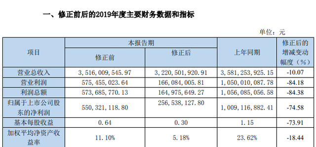 第一枚“重磅炸弹”在4月29日凌晨忽然引爆,游族网络发布2019年年度报告业绩修正公告,调整后2019年的营收从35.16亿元降到32.2亿元,净利从5.75亿元骤降至2.56亿元,同比2018年下降10.07%、74.58%。