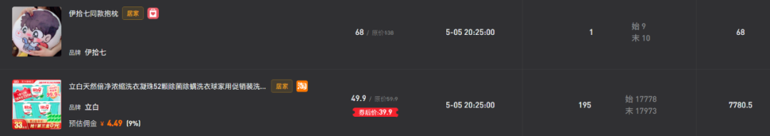 选择哪种手办售卖有讲究。IP知名度不高时,可能出现带不动货的情况。虚拟艺人“伊拾七”在抖音拥有985万粉丝,“重度”活跃用户占比71.24%,忠粉不少。但在5月5日的直播中,一款根据自身IP制作的抱枕只卖出了一个,反而另一款有折扣的立白洗衣粉卖出195件。