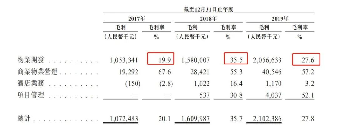 最近三年领地集团正在“爬坡上坎”,收益额总体攀升,分别达到53.38亿元、45.14亿元和75.68亿元,利润净额分别为6.49亿元、5.18亿元和6.72亿元,毛利率分别为20.1%、35.7%及27.8%。