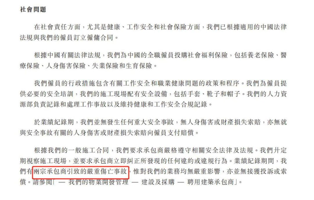 关于安全事故,领地集团在招股书中做了2句话的声明,第一句话是: