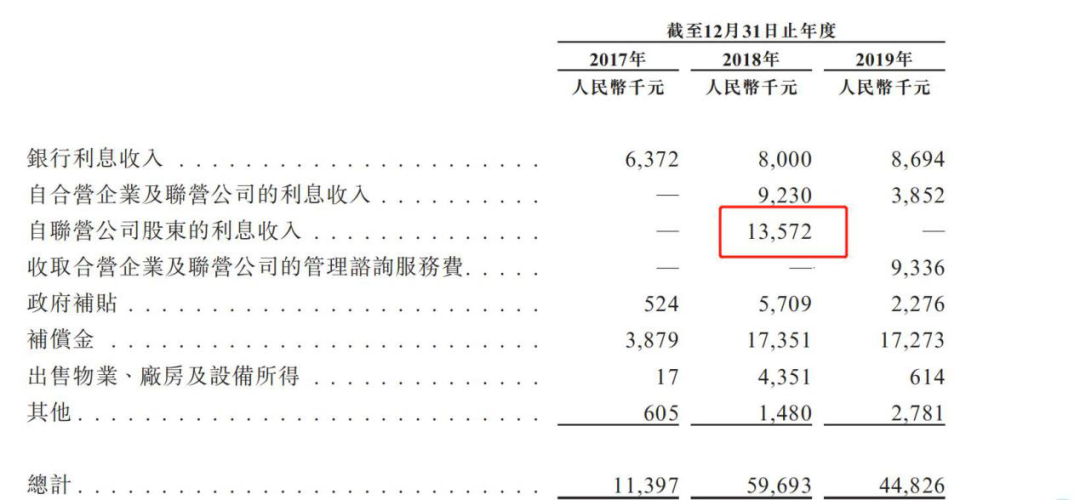 最近三年期,唯有2018年有一笔来自联营公司股东的利息收入,虽然在招股书中领地并没有披露该股东名称,但穿透联营公司股权后可以发现该股东为金科地产。