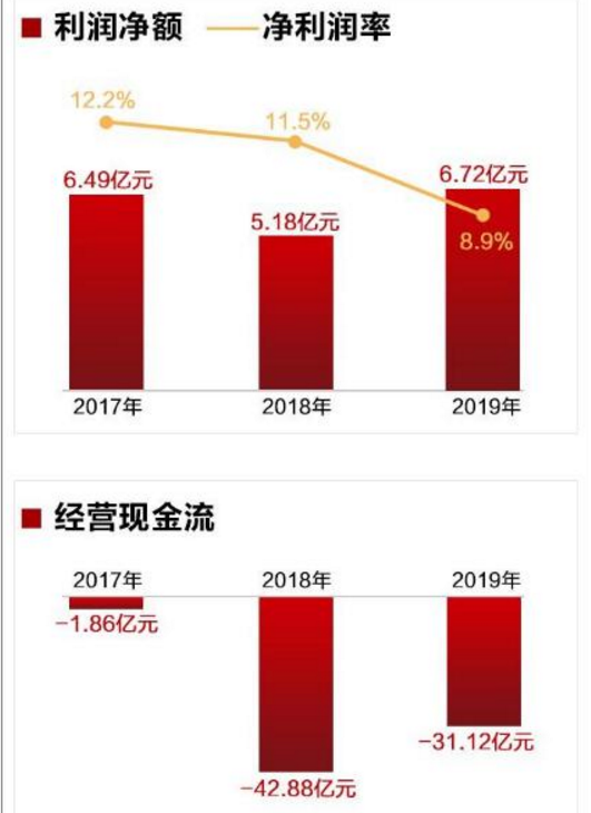 2017至2019年,领地连续三年经营性现金流和投资性现金流净额为负,至2019年末现金及现金等价物只有13.82亿元,甚至不足以覆盖一年内到期的短期负债,后者在2019年底有57.63亿元待偿。