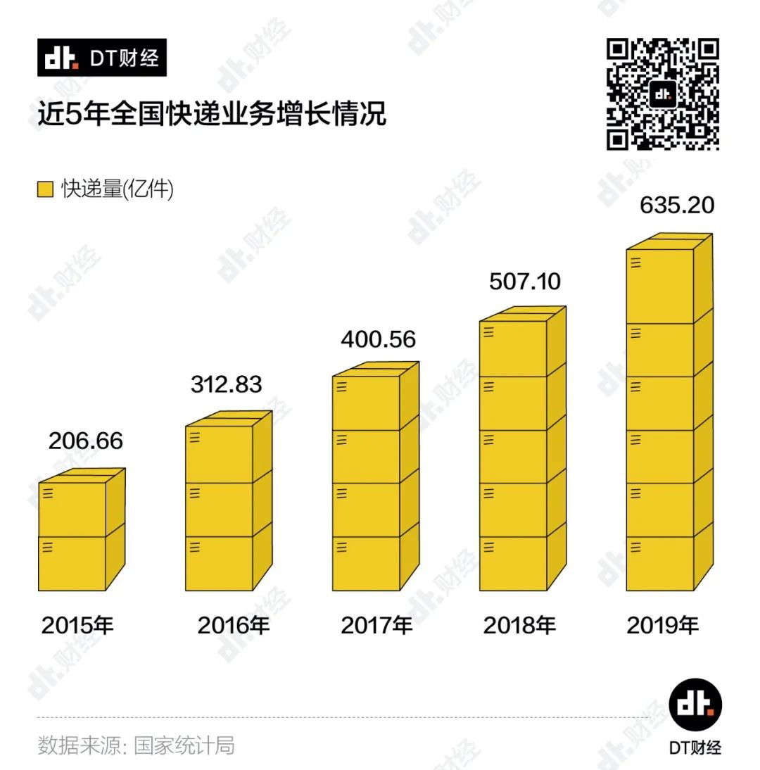 当网购成为一种习惯,中国的快递量也与日俱增,2018年和2019年中国的快递包裹数量分别为507亿件和635亿件——仍在高速增长。