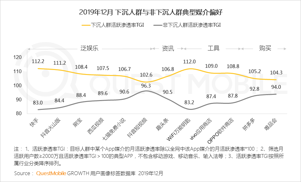 4.1 下沉人群媒介偏好为泛娱乐和购物,预装也为有效触达方式