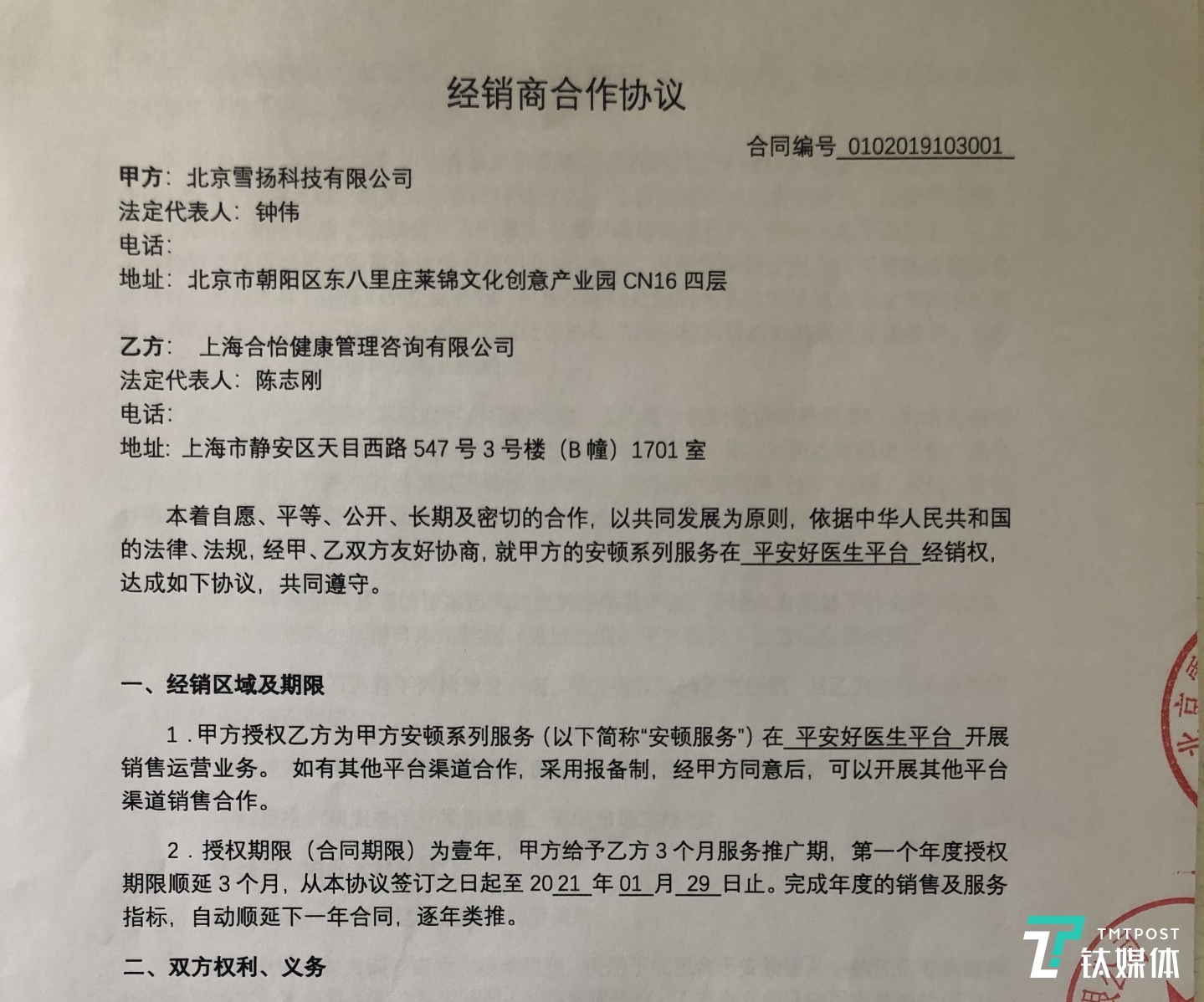 如微博所述,雪扬科技是透过第三方经销商——上海合怡健康管理咨询公司的法定代表人陈志刚,与平安好医生进行了接触。