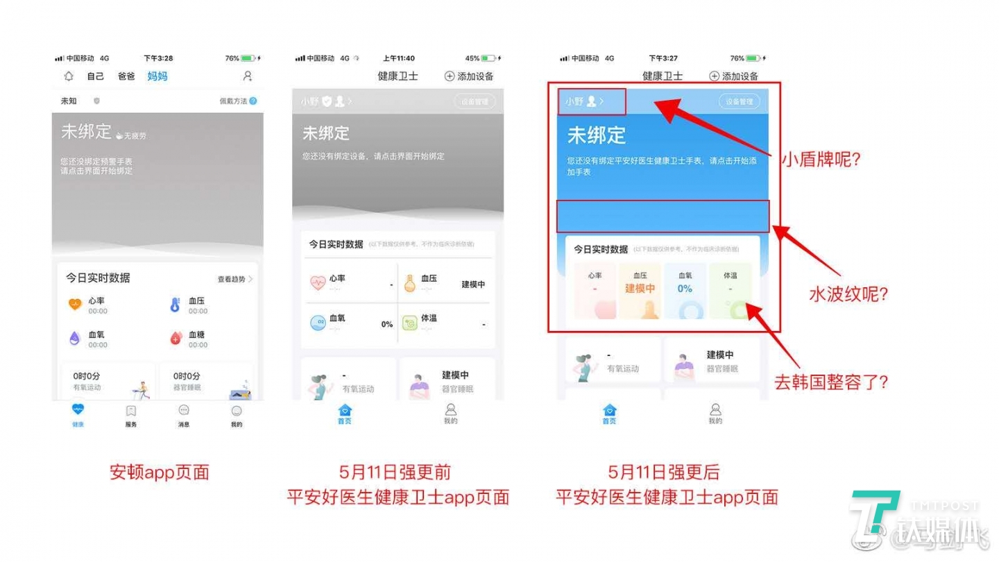 而在“抄袭纠纷”公开之后,平安好医生健康卫士App IOS端进行了一次强更,并在官方微店反复上架,页面去掉了相似的水波纹。