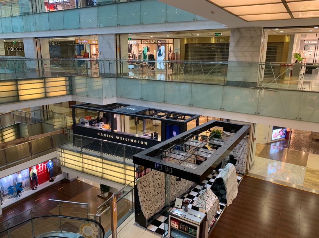 工作日的西单大悦城,空荡无人,大部分店面关闭(显微故事,摄于三月)
