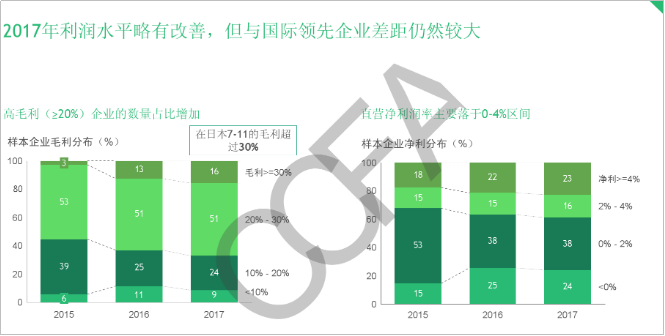 国内便利店的平均价格比传统超市高15%、毛利率多在20%-30%,但净利率很难超5%