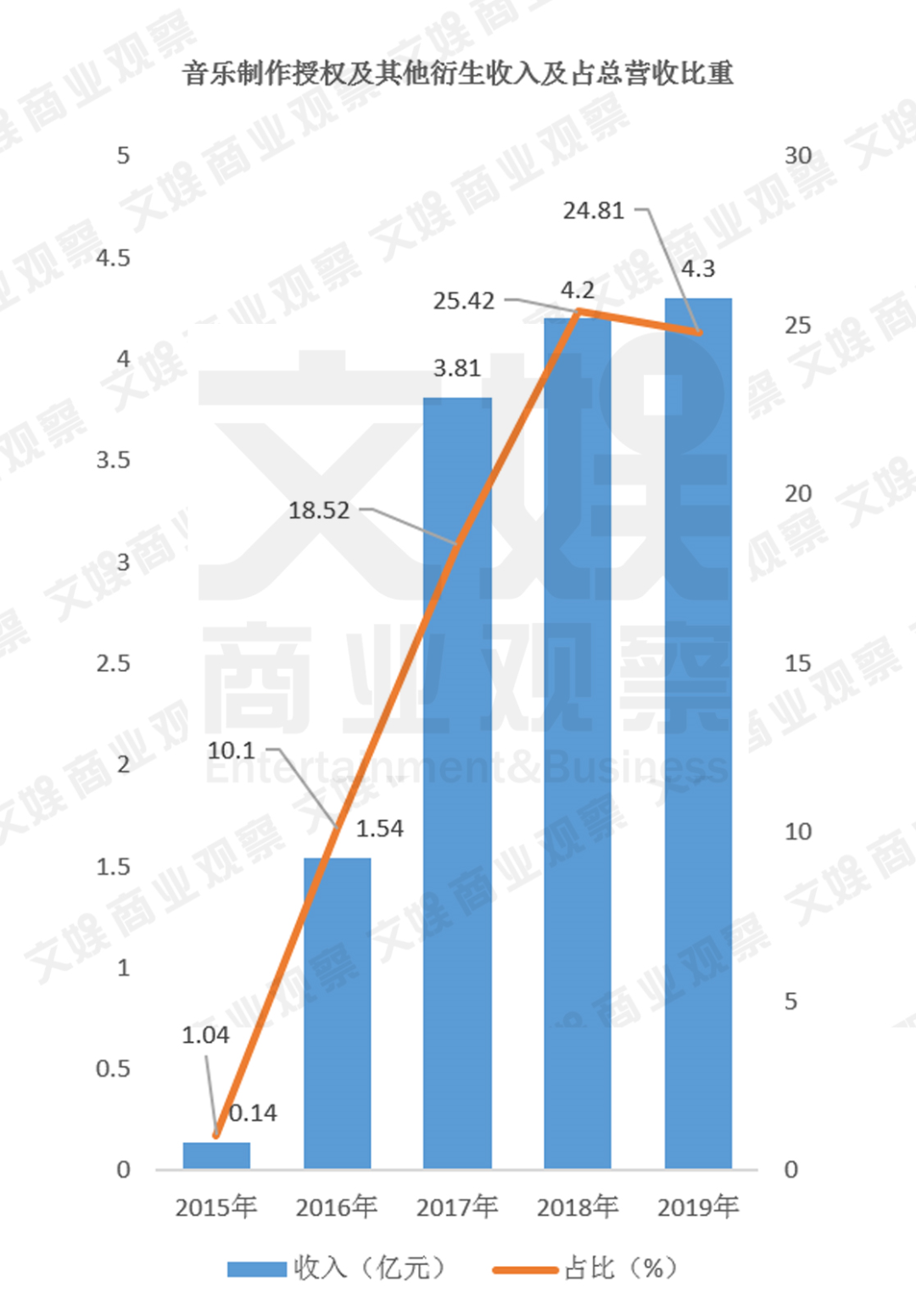 音乐制作授权及其他衍生业务是一个相对宽泛的概念,可以将它理解为音乐版权授权和艺人经纪两个细分项来理解,这都是基于综艺节目而衍生的业务。