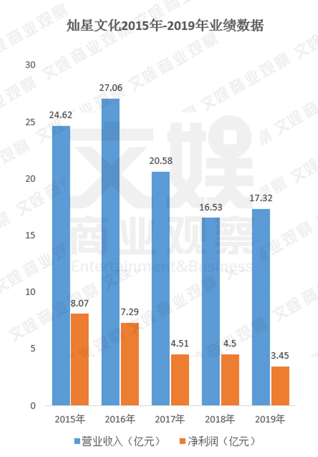 根据最新的招股书资料,2018年和2019年灿星文化过得并不是很好,分别实现营业收入16.53亿元和17.32亿元,相比较于2017年的20.58亿元出现了明显的下降;
