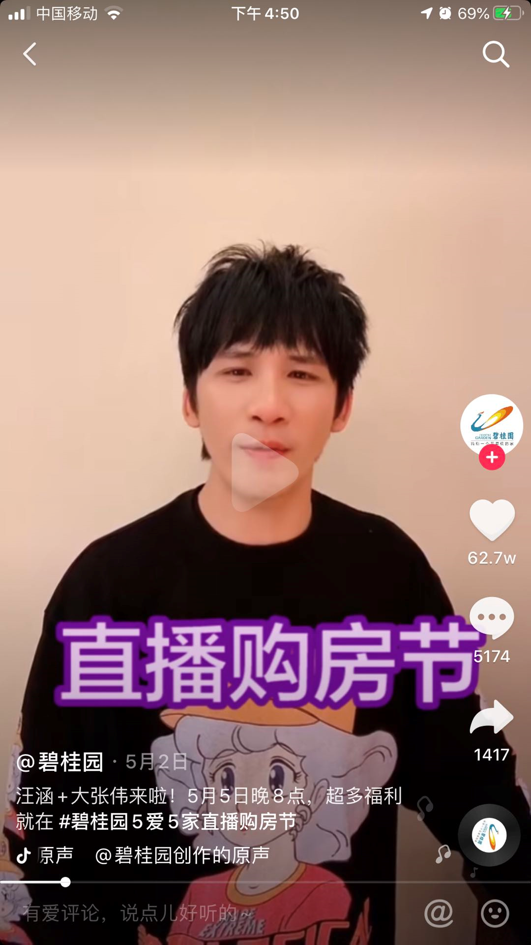 5月5日汪涵、大张伟针对碧桂园的直播并没有说卖了多少套房,主要是作为打造碧桂园“55购房节”IP的一部分,这是典型的品牌营销。