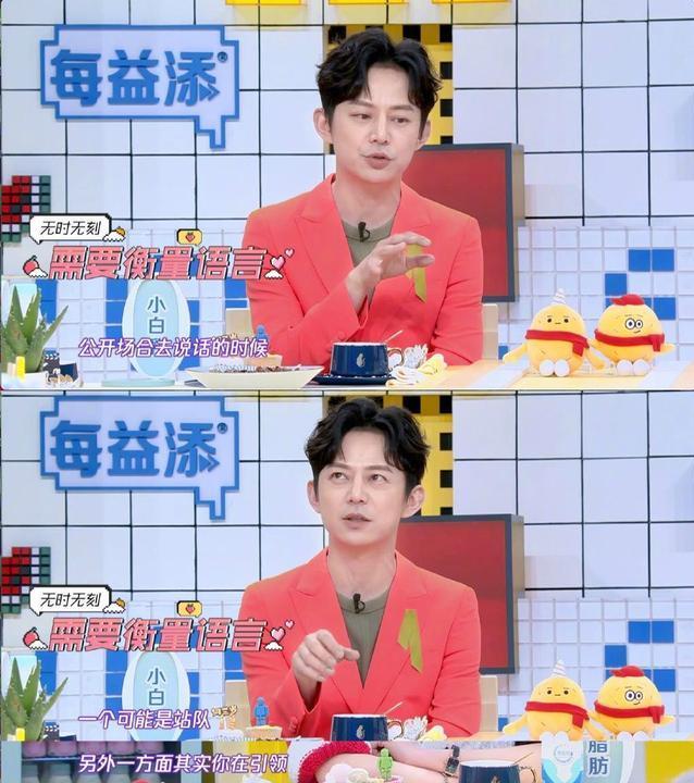 何炅在节目中说了一句话,“有时候在公开场合去说话的时候,一个可能是(被认为)站队,一个可能是引领(引导)”。