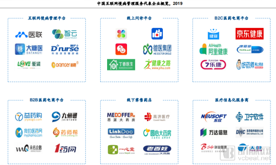 参与互联网慢病管理行业的企业类型众多,涵盖互联网慢病管理平台、线上问诊平台、医药电商、线下零售药店、医疗信息化服务商等。各企业基于不同切入点及商业优势,正在积极布局互联网管理生态。