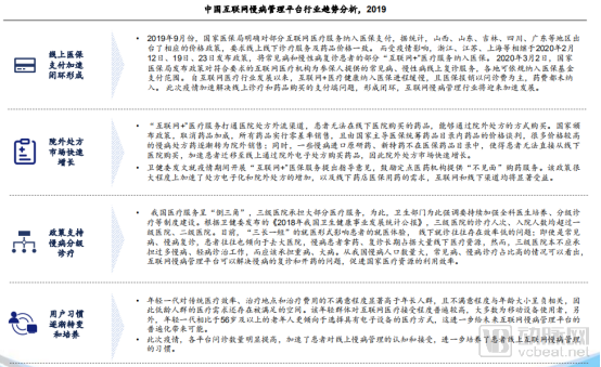 4、中国互联网慢病管理市场仍在发展阶段,稳固的医患关系链、“新特药”的数量、完善的供应链及线上医保支付将是促成平台成功的重要因素;
