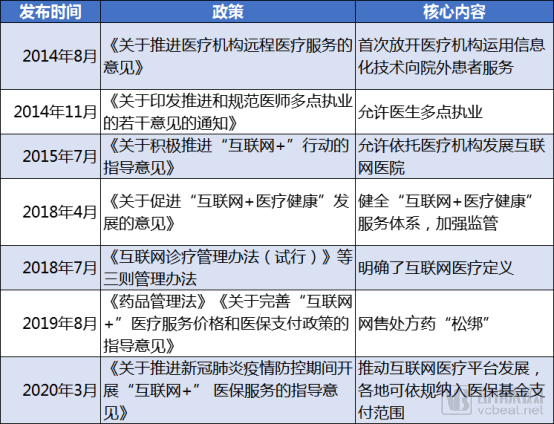 2014年至今,《关于推进医疗机构远程医疗服务的意见》等多个政策出台,陆续打通了轻问诊、严肃医疗问诊/挂号、处方药流通、医保支付等环节,形成从线上问诊、线上购药到线上支付的完美闭环,实现就诊服务全流程线上化。