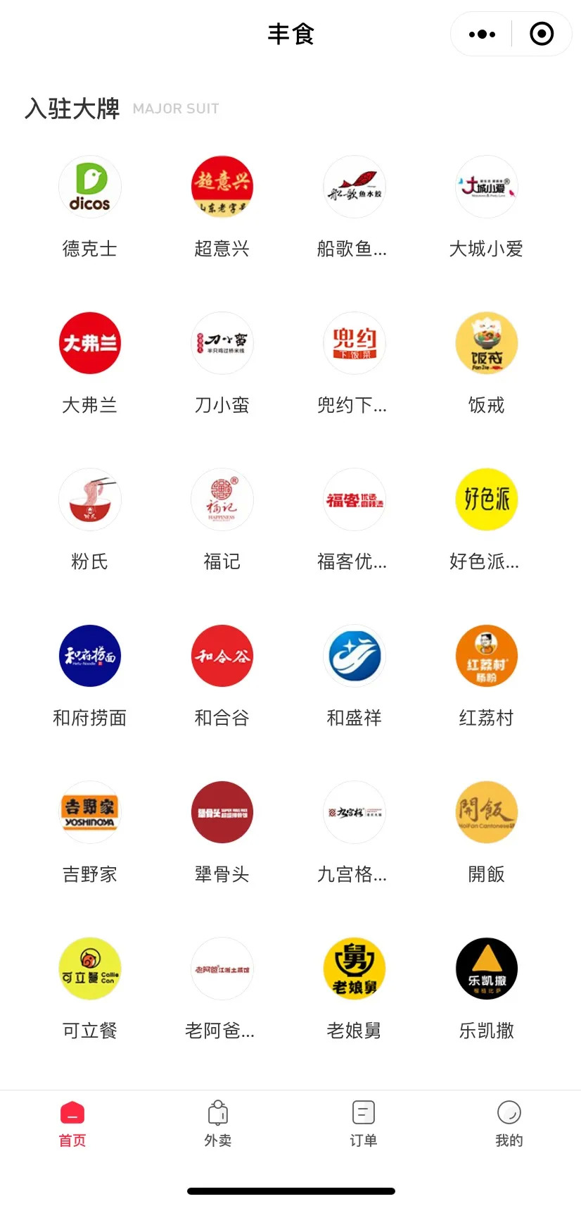 入驻丰食的品牌,图源丰食小程序