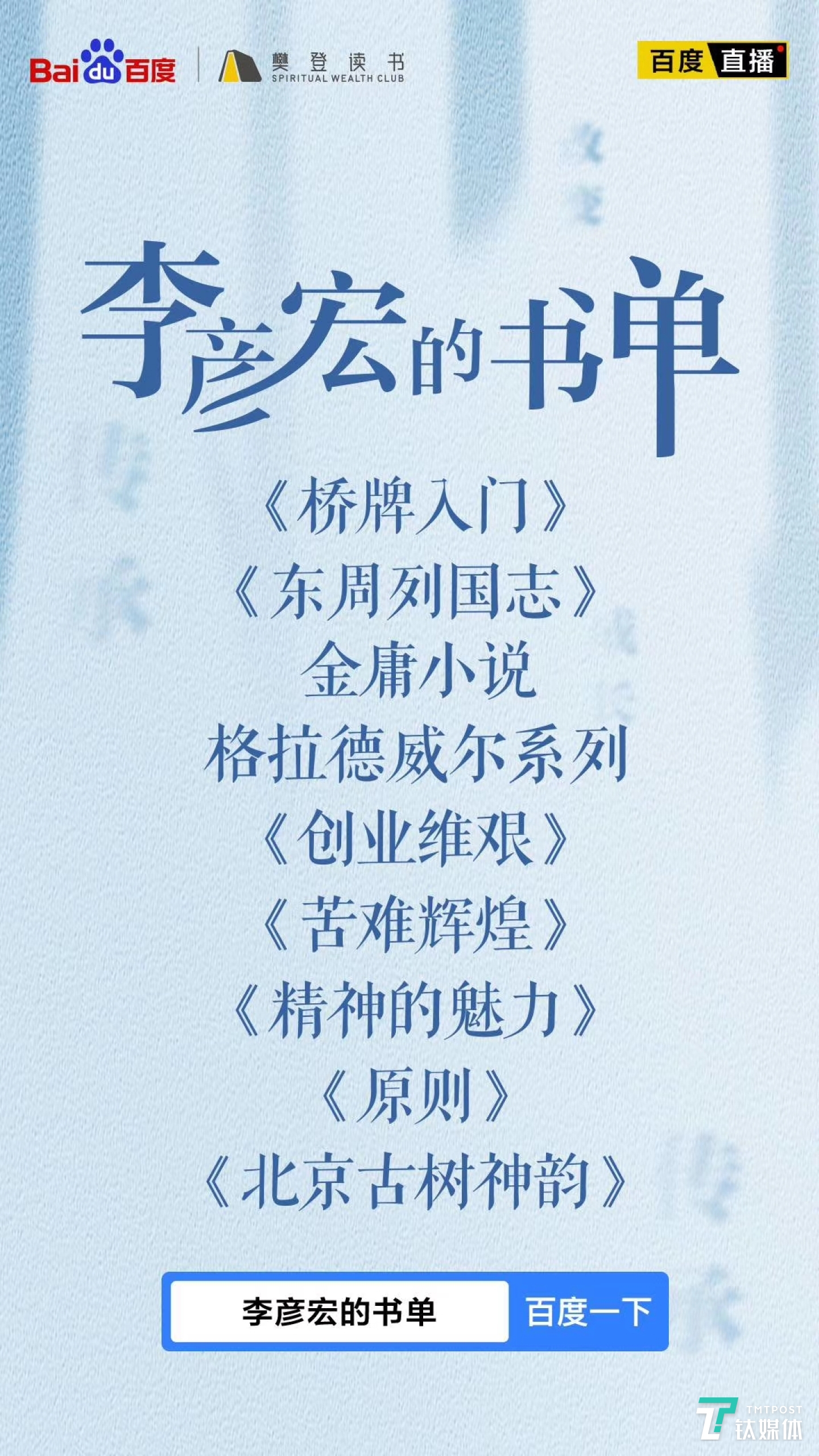 李彦宏百度APP直播首秀谈读书