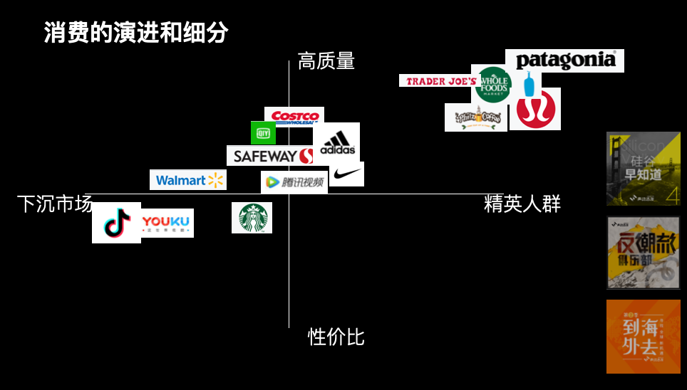 跟人消费有关的东西,一家店是没有办法去满足所有人的需求,因为每个人的需求不一样,而且高收入低收入价值观不一样,或者消费选择不一样,都给生产这些消费品的人留下了空间。所以接下来我们就看内容方面,是什么样的?