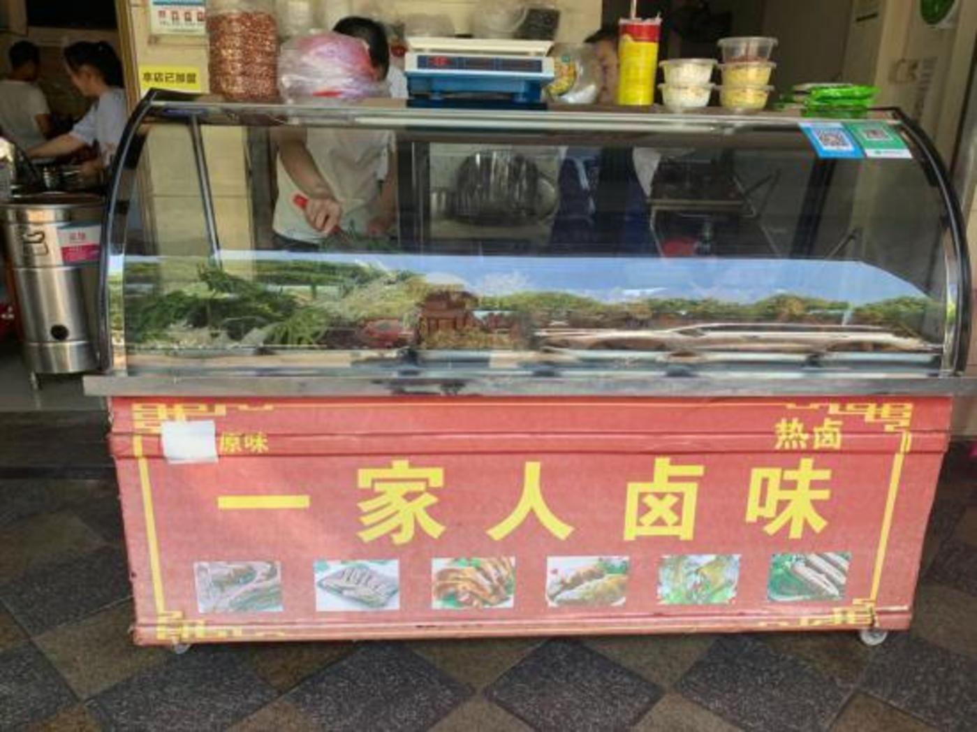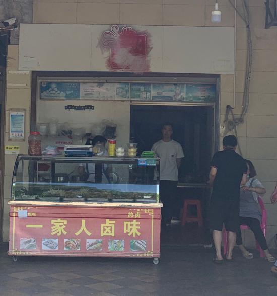 只有门口打着“一家人卤味”招牌的推车,和推车货架里堆得满满当当的卤味,以及认着“勤快”和“口味”两个死理的70后夫妻,展示着这家餐饮店的风貌。