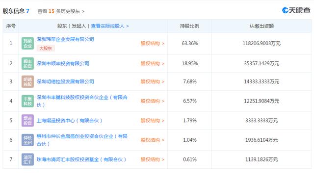 丰巢成立于2015年,由顺丰联合申通、中通、韵达以及普洛斯集团共同成立,总投资规模为5亿元。主要为所有快递公司、电商物流提供24小时自助快递收寄交互业务,也就是丰巢快递柜。随着一系列股权转让和融资,据天眼查目前检索显示出的信息来看,丰巢股东信息方面只有顺丰一家快递公司。