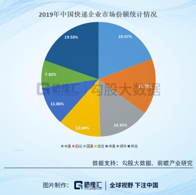 顺丰业务大家肯定都懂,主要是以高端服务和高时效为主的商务件,而"通达系"主要是平价的电商件为主。商务件尽管有着高毛利的优势,但是市场份额占比太小,从下图可以看出,顺丰2019年市场份额只有7.62%。而"通达系"所代表的电商件占据着大部分市场份额,但是有着毛利率普遍偏低的缺点,这也是个苦差事。