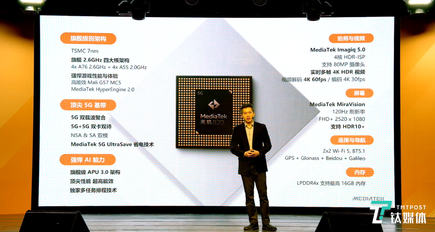 钛媒体快讯 | 5月18日消息:今日,MediaTek正式发布天玑系列5G SoC新品——天玑 820 。