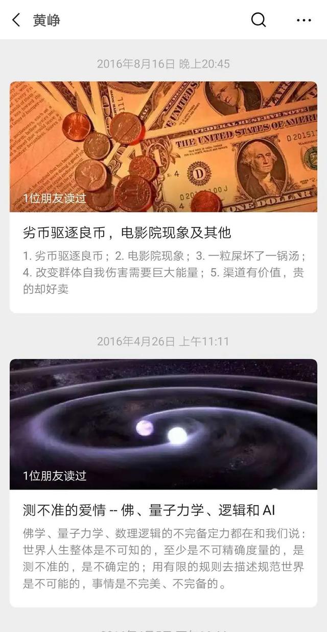 在拼多多还没有受到广泛关注之前,黄峥一直在自己的微信公众号更新文章,从2016年2月到2017年9月,他一共发布了9篇文章,最初的3篇文章讲述了自己求学、工作和创业的经历,随后的几篇文章一直在分享各种观点,有关于哲学的,也有对经济的看法。