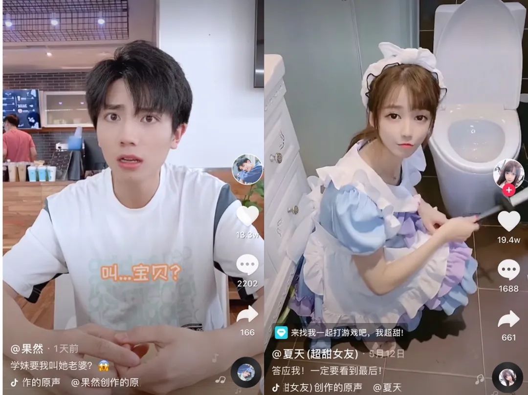 抖音上的情侣KOL大致分为两类:一种是现实中的真情侣、真夫妻,还有一种是自带角色定位的情侣剧情号,“营业内容”都以展现“甜甜恋爱”的日常生活vlog和搞笑短视频为主。