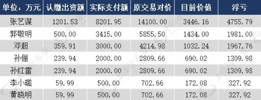 公开信息显示,明星投资人们为贾跃亭的梦想“买单”金额不菲,多的亏损几千万,少的亏损几百万。如果持有至今,恐怕早已颗粒无收。