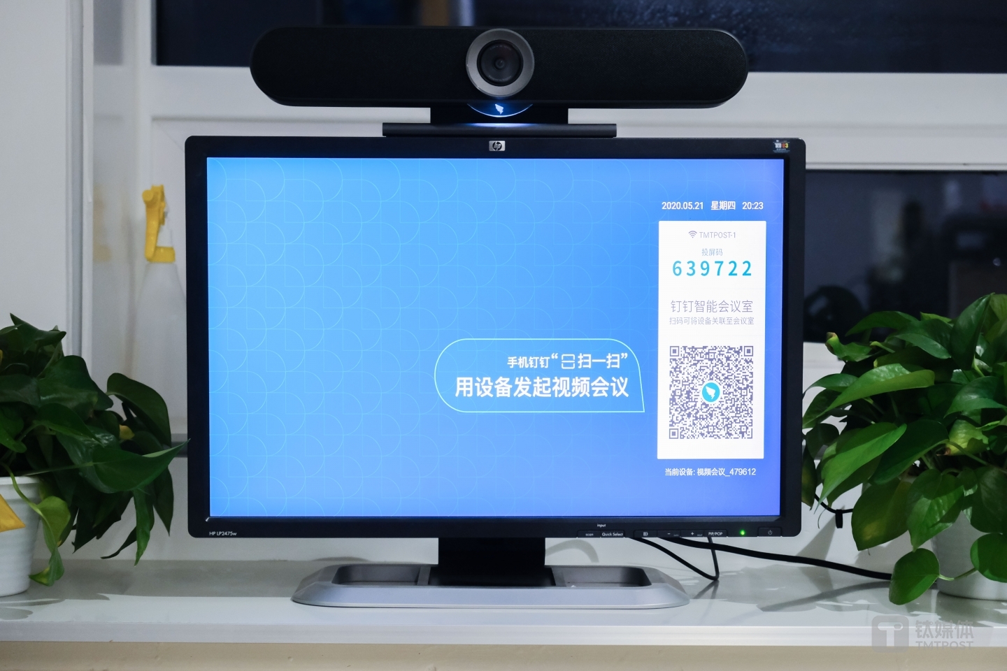 当设备被安置好了之后,如何利用设备发起会议?很简单,打开钉钉扫码。