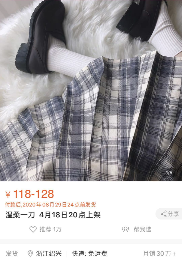 “突然一下子,JK制服火了,7W是很多店开店以来的销量了。”有JK店主在微博小号表达震惊,“以前裙子都是200条起做,能卖到500条1000条就是销量不错,单款上万条,还是卖过的款式,以前想都不敢想。”
