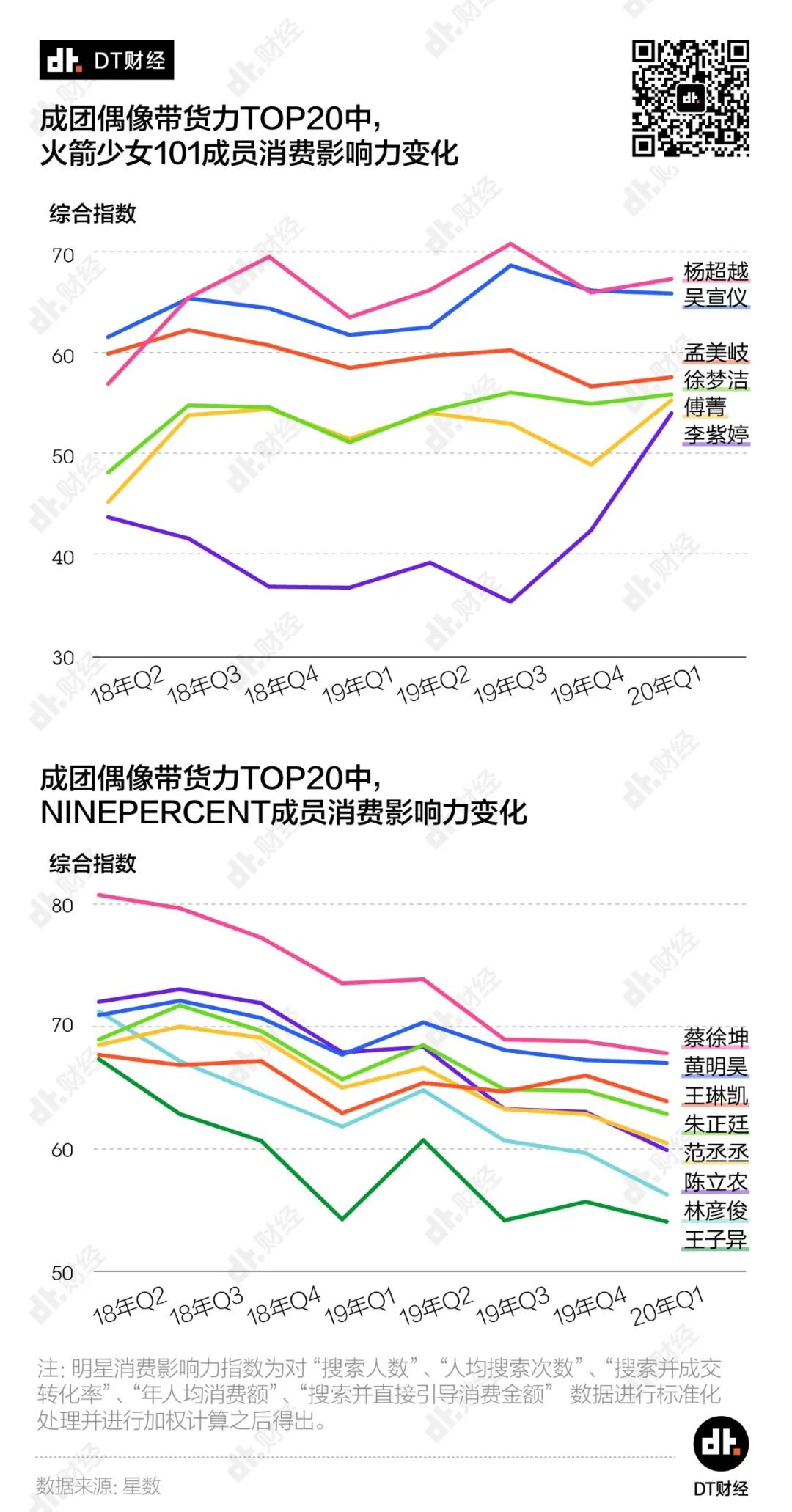 这种下降和上升的趋势,在偶像们的消费影响力层面也有所体现。