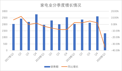 数据显示,过去三年家电行业总销售额几乎处于横排态势,不时伴有收缩的风险。在2020年疫情期间,家电行业又首当其冲遭遇重击,Q1销量同比收缩超过30%,供需面临失衡风险。