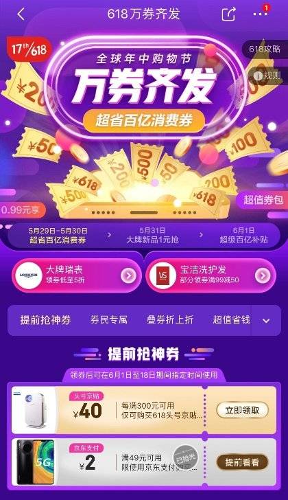 2020年618京东补贴超百亿消费券,数据来源:京东官网